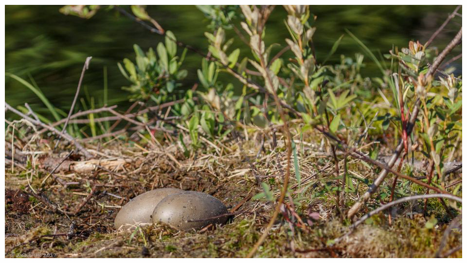 June 3- back home and spent a good hour or so watching the nest. The loons changed guard and I saw one or two eggs. Hard to tell how many for certain.