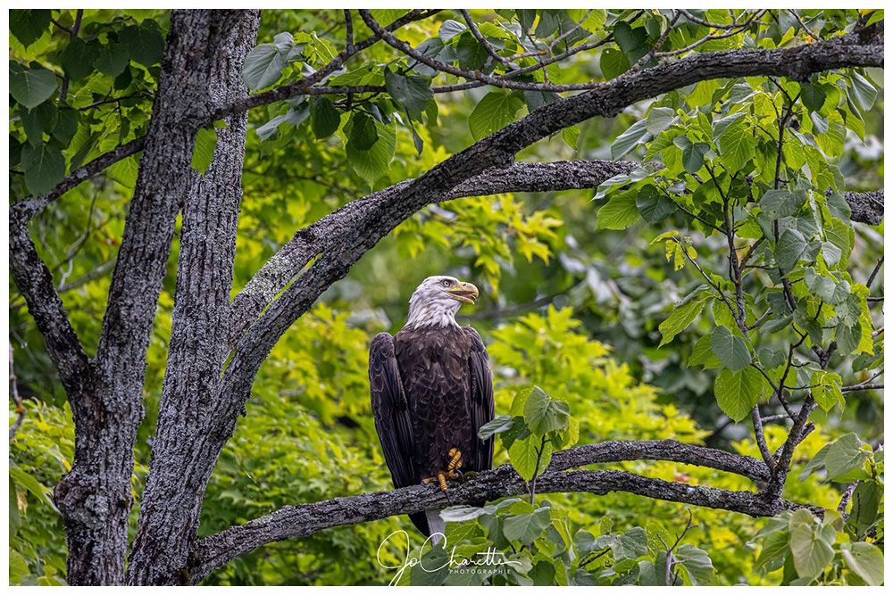 July 18- was at the lake numerous times today, early to see if the eggs had hatched and then frequently once all the excitement started. A long series of distress calls brought a few loon watchers to our docks. The loon was off the nest and calling out. I kept hearing an odd sound like styrofoam squeaking and scanned the area to see where it was coming from. I located a large bird at the top of a tall dead tree and at first glance thought it was the osprey who had visited the lake just the other day. But looking more closely at the bird, I realized that only the head was white; it was a bald eagle! Now I understood the loon's panic. The eagle is a real threat to the loon nest, known to raid and kill the vulnerable hatchlings. Another smaller bird of prey, perhaps a cooper's hawk, was harassing the eagle for sitting too close to its nest and each time it flew at the eagle the eagle would "squeak". The loon would cry out each time the eagle vocalized. The eagle was perched a good distance away from the nest but with a clear line of sight to it. The loon returned to the nest and continued to cry out occasionally. Soon the loon partner swam onto the scene and floated at the base of the tree where the eagle was perched. It called out often, perhaps defending its territory and nest. The eagle stayed perched in the tree for hours and there were frequent alarm calls from the loons. As darkness fell the loon was still on the nest and the eagle appeared to be gone. It caused such a panic today. I hope it doesn't come back.